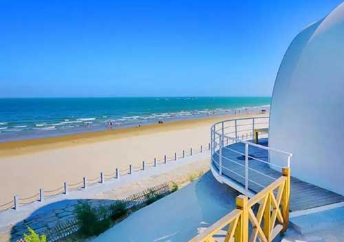 漳州火山岛纪念碑谷景区,又称火山岛地学博物馆,位于火山岛旅游休闲度假区内。这里就像是一座粉色城堡,错落有致的结构建筑,梦幻而甜蜜的马卡龙色彩,使之成为国内小众旅行网红打卡地,深受欢迎。这幢巨大的建筑奇幻而瑰丽,纯粹的粉色、蓝色和灰色与碧蓝的海天一线,组成了一幅令人窒息的风情图,传统的阿拉伯元素搭配无比现代感的整体设计,内部高低错落、如迷宫般引人入胜,被称为“现实版的纪念碑谷”。
