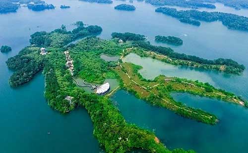 山上观景,四季苍松翠柏、湖光粼粼,湖面辽阔,蔚为壮观。坝上观城,景色如画,高楼如林,南湾湖宛若一颗硕大的蓝宝石镶嵌在贤山之中。鸟岛,又名牌坊岛,是南湾湖中面积最大的岛屿,每年有大量的候鸟会在此栖息,鸟群盘旋于岛上,上下翻飞,壮观无比,是南湾湖的打卡地之一。
