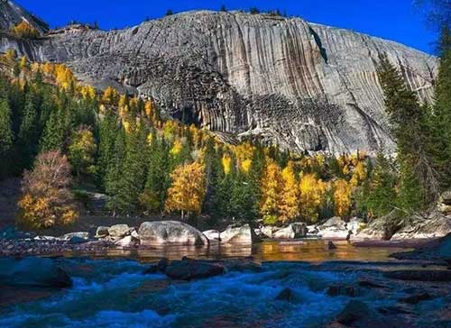 可可托海风景区,位于新疆北部阿勒泰地区富蕴县,占地面积788平方公里。景区由额尔齐斯大峡谷、可可苏里、伊雷木特湖、卡拉先格尔地震断裂带四部分组成。它以优美的峡谷河流、山石林地、矿产资源、寒极湖泊和奇异的地震断裂带为自然景色,融地质文化、地域特色、民族风情于一体,以观光旅游、休闲度假、特种旅游(徒步、摄影等)、科学考察等为主要特色的大型旅游景区。
