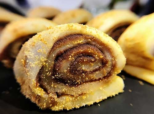 驴打滚是北京传统小吃之一,更是相传深得慈禧太后深爱。制作驴打滚,我们需要准备大黄米面、黄豆面、澄沙、白糖等。制作方法也是很简单,主要分为三个步骤。而经过三个步骤做好的"驴打滚"外层撒上黄豆面粉,过程简直不要太治愈。黄灿灿的豆粉加上绵软的馅料,一整个味蕾的盛宴,让人不禁一个吃完还想来一个。