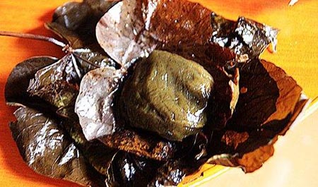 用桐叶包着的糍粑,外皮是香软的糯米,甜口的可选芝麻或红豆馅儿,咸口的可挑腊肉、梅菜扣肉等,但比较油。老人和孩子都适合吃。近沈从文故居的中营街上有一家桐叶粑老字号,3元/个。